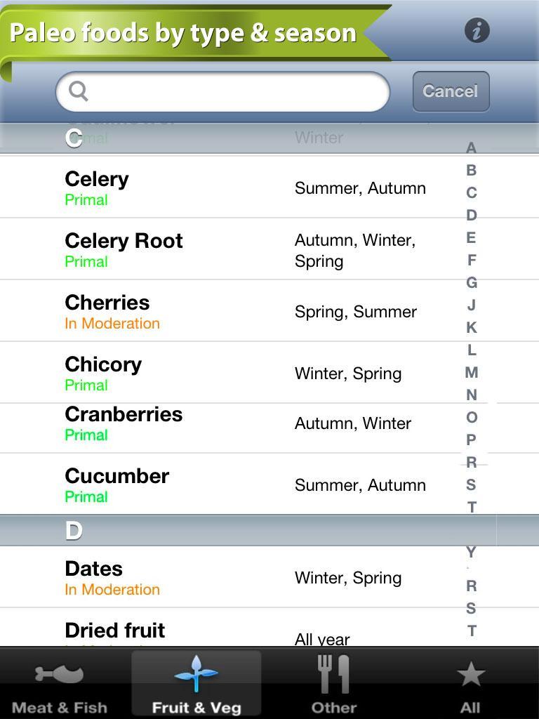 1- Listes alimentaires: cette alimentation est-elle primordiale ou non? Liste entièrement consultable de tous les aliments de régime Primal, recherche par nom, type et même la meilleure saison pour manger la nourriture! Votre compagnon d'achat idéal et guide de référence pour le régime Paleo. Tout gluten sans gluten bien sûr.