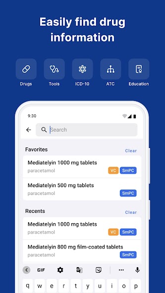 L'application comprend également la classification de la maladie ICD-10 et le système de classification ATC. Nous le maintenons régulièrement à jour, vous avez donc toujours les informations les plus récentes avec vous.