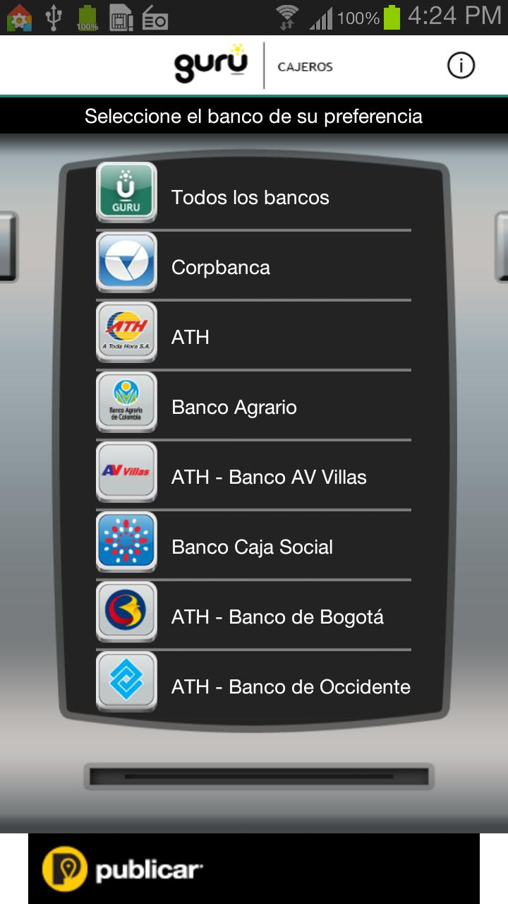 Guru Cajeros est une application mobile facile à utiliser qui vous aidera à trouver le caissier le plus proche. Il suffit de toucher l'écran, l'application suggère le caissier plus proche de votre position et vous dira également comment passer des cartes.