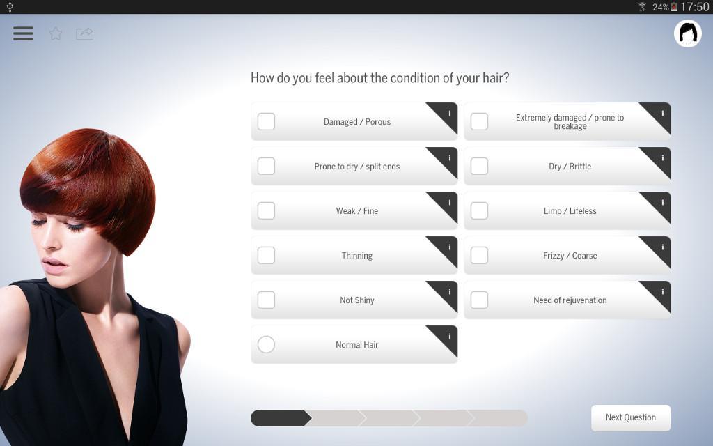 «Je trouve que la nouvelle application Hair Expert bien supérieure aux autres applications capillaires que j'ai essayées. Il est facile de travailler pour moi et mon client, et le diagnostic et la recommandation de produit sont très précis et utiles. »
