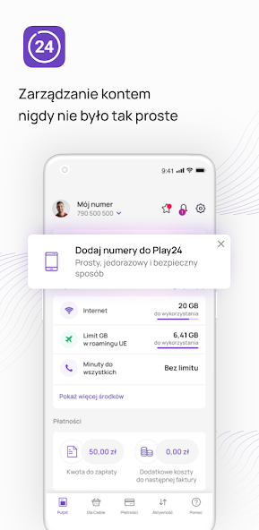 Utilisez-vous Play ou Virgin Mobile Services? Téléchargez l'application Play24 et découvrez à quel point vous pouvez gérer facilement vos chiffres. Non seulement vous y trouverez les dernières offres et offres spéciales, mais aussi une multitude de fonctionnalités pour vous faciliter la vie.