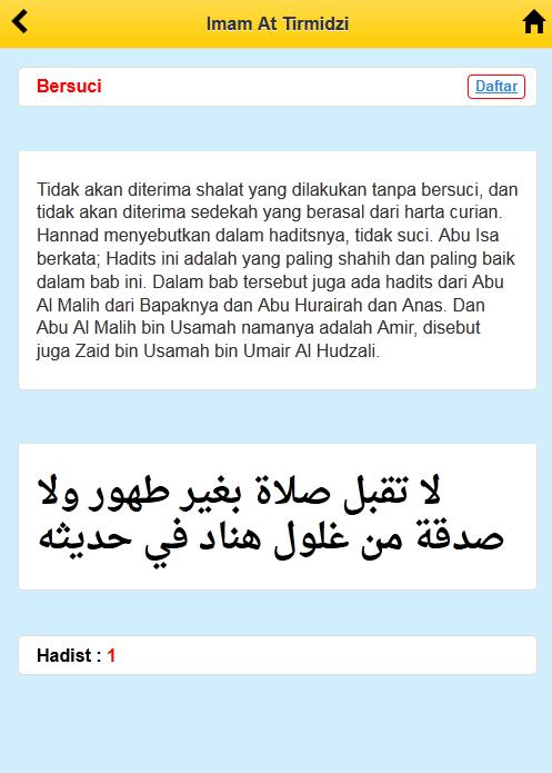 Bu Isa Muhammad bin Isa Bin Surah à Turmudzi (mieux connu sous le nom de Turmudzi / à Turmudzi / à Tirmidzi) est un hadith. Il avait étudié les hadiths de l'imam Bukhari. Il compile Sunan à Turmudzi et Al Ilal. Il a dit qu'il avait déjà présenté son livre aux érudits de Hijaz, Irak et Khurasan, et ils étaient tous d'accord avec le contenu du livre. Son travail est le livre d'Al-Jami 'qui est l'un des "Pole Sittah" (six livres des Hadith) et la célèbre encyclopédie des Hadiths.