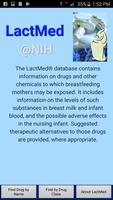 LactMed , qui fait partie du réseau de données de toxicologie de la National Library of Medicine (NLM) (TOXNET®), est une base de données de médicaments et d'autres produits chimiques auxquels les mères qui allaitent peuvent être exposées. Il comprend des informations sur les niveaux de ces substances dans le lait maternel et le sang du nourrisson, et les effets négatifs possibles chez le nourrisson infirmier. Des alternatives thérapeutiques suggérées sont fournies aux médicaments, le cas échéant. Toutes les données sont dérivées de la littérature scientifique et entièrement référencées. Les données sont organisées en enregistrements spécifiques aux substances, qui fournissent un résumé des informations pertinentes rapportées.