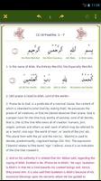 Cette application vous donne la facilité de lecture et d'étude du Coran car elle fournit des traductions pour chaque verset et pour chaque mot de la langue anglaise. Dans chaque verset, a également inclus des explications de Tafseer Jalalayn et Tafseer Ibn Abbas. A également fourni de l'audio pour chaque verset.