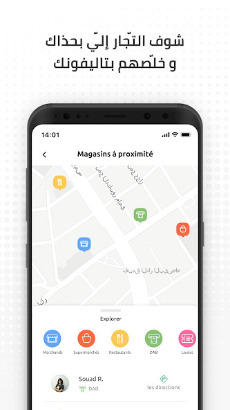 You now have access to a wide range of partner merchants across Tunisia. You can pay through the app by simply scanning the QR code shown on the counter or the checkout page.
