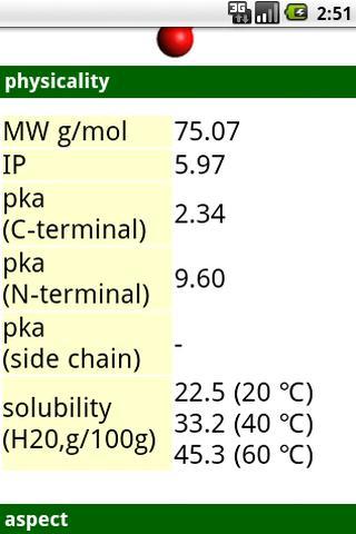 Il s'agit Amino Acids List qui est utile à ceux qui étudient la biochimie.
