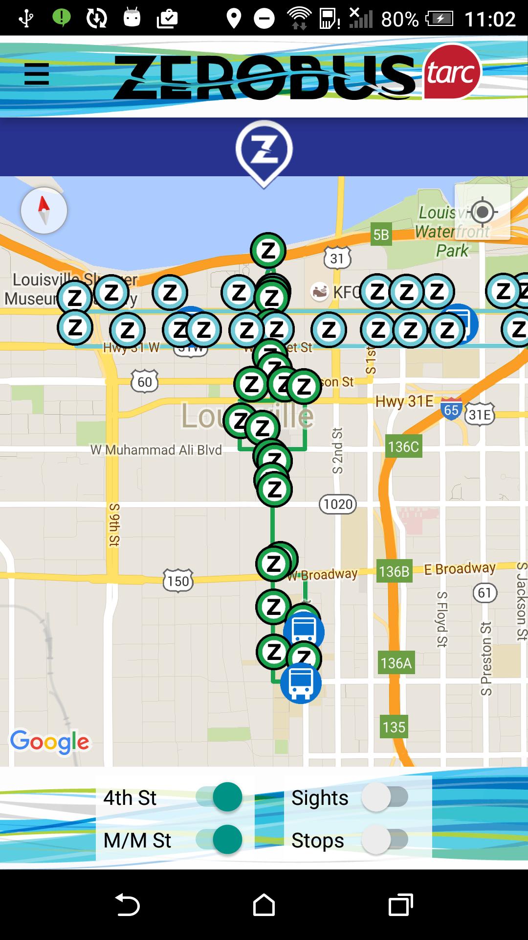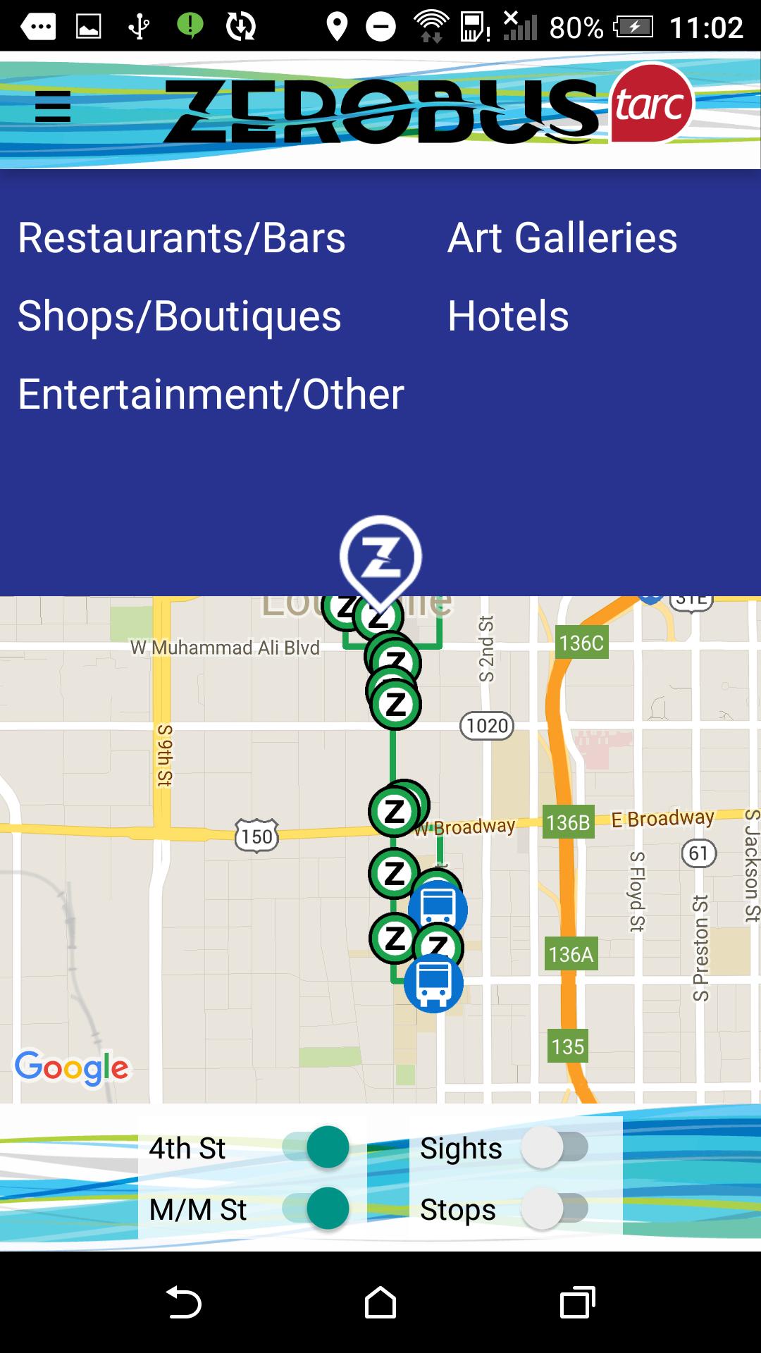Laissez votre explorateur intérieur courir gratuitement au centre-ville de Louisville sur Zerobus entièrement électrique de TARC ! Voir le Zerobus sur les routes, les attractions en cours de route, et découvrez en temps réel lorsque Zerobus arrive à chaque arrêt. Juste à bord d'un Zerobus - tous les manèges sont gratuits! - le long des couloirs principaux, du marché et de la quatrième rue. Des boutiques aux hotspots Bourbon, l'application Zerobus facilite le déplacement du centre-ville.