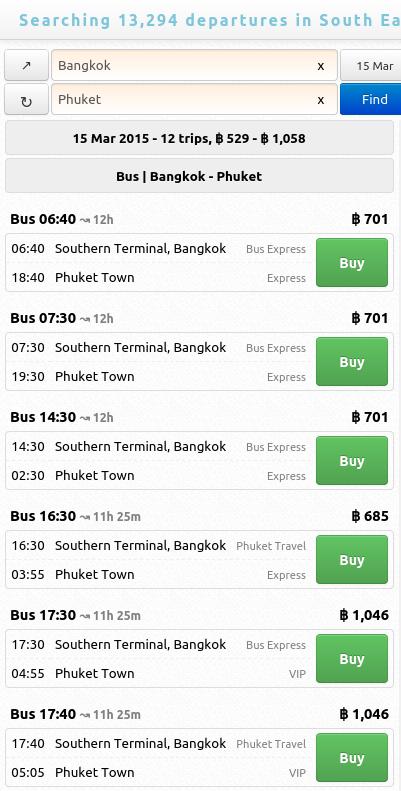 Cette application vous permet d'obtenir un billet pour les trains en Thaïlande, les bus, les ferries et les mini-fourgonnettes. Vous recevrez un billet dans votre e-mail, montrerez-le au comptoir depuis votre téléphone portable et faites le trajet. Très simple.