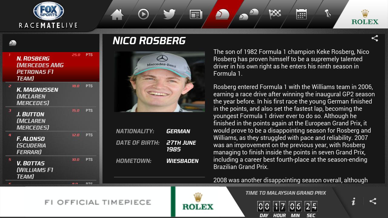 - flux Twitter exclusif avec # foxsportsf1 et capacité à discuter sur FB pendant les heures de course en direct
