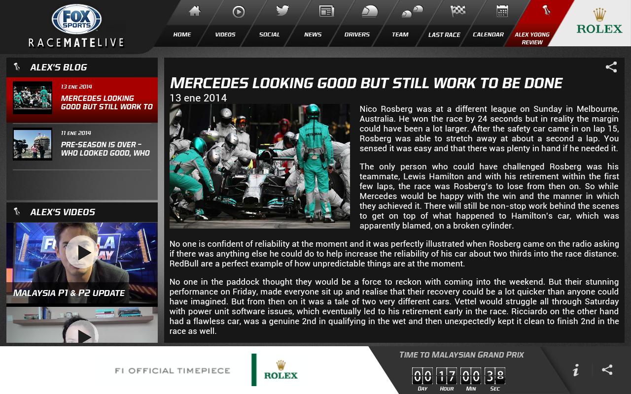 - Blogs, vidéos et articles exclusifs de l'EX F1 Race Driver Alex Yoong