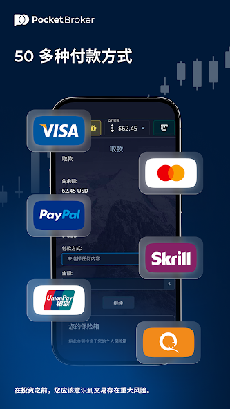 Reveal all the Pocket Broker features with real trading mode. Deposit and withdraw quickly and easily with our wage payment services portfolio. Choose reliable global and local providers that perfectly match your needs.