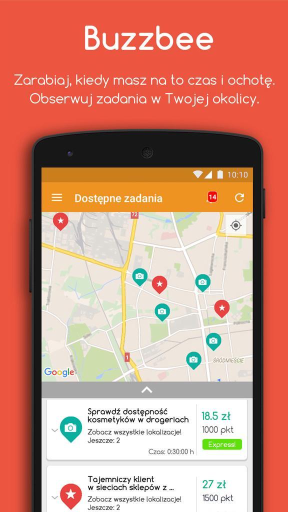 Comment ça marche? Avec Buzzbee, vous pouvez effectuer des tâches simples sur le terrain et la maison pour une variété d'entreprises. Tout ce que vous avez à faire est de vérifier le prix du produit dans votre magasin local, de remplir une enquête ou de prendre une photo du panneau d'affichage, et en quelques minutes, votre compte sera augmenté par un autre Zloty brillant, que vous pouvez ramasser à tout moment via PayPal!