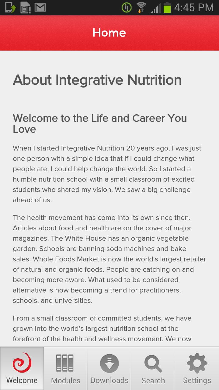 Cette application fournit des cours d'études aux étudiants de l'Institut pour la nutrition intégrative (IIN) inscrits au programme de formation des coachs de santé. Il y a des conférences des experts de nutrition et de santé de renommée mondiale et le fondateur de l'IIN, Joshua Rosenthal, MSCED.