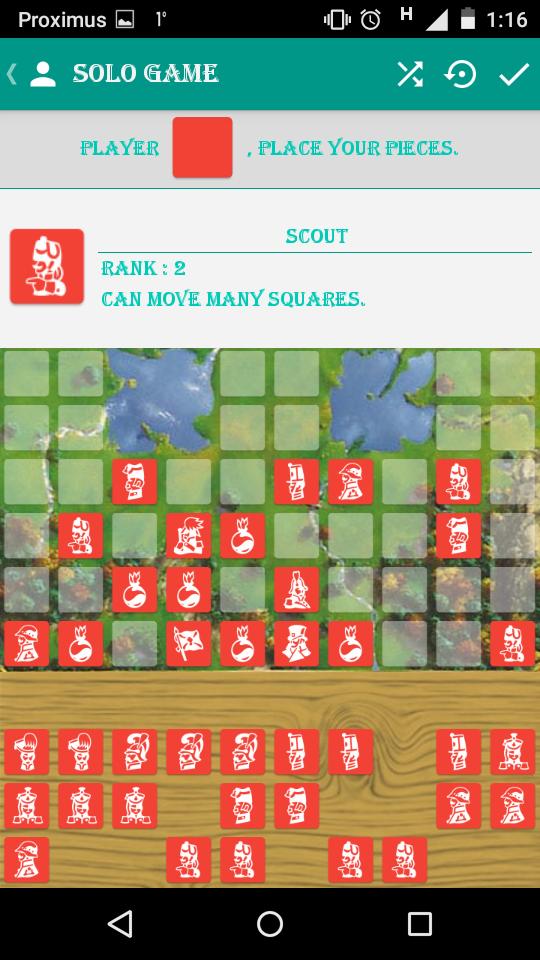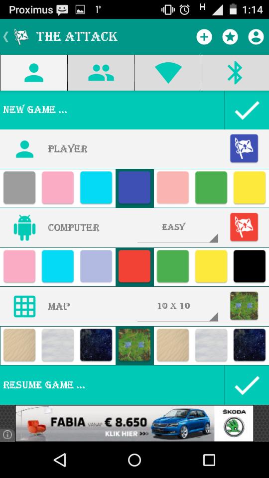Il s'agit d'un jeu au tour par tour dont le but est d'attraper le drapeau de l'adversaire. Vous pouvez jouer en solo par rapport à trois AI de niveau différent, ou vous pouvez jouer par rapport à un autre joueur avec le mode «passer et jouer», le mode «WiFi» ou le mode «Bluetooth». Choisissez un mode, choisissez une couleur et laissez la guerre commencer!