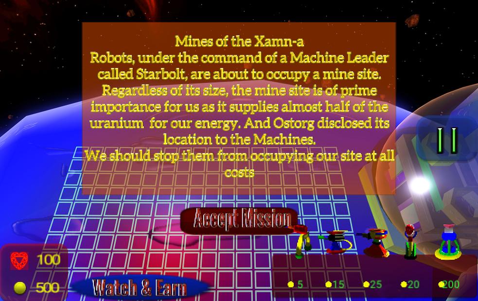 Les robots, sous le commandement d'un chef de machine appelé Starbolt, sont sur le point d'occuper un site de mine.