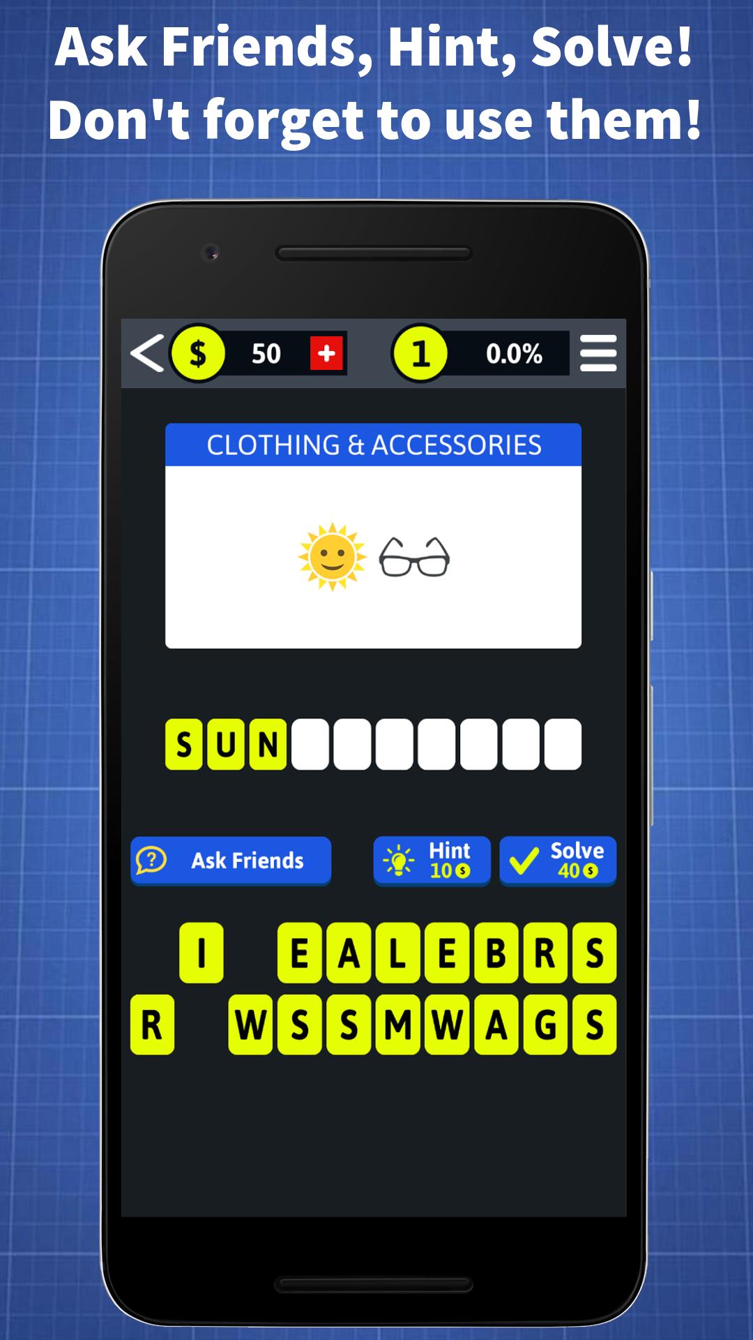 Nous ne vous laisserons pas de côté si vous ne pouvez pas répondre à la question de notre jeu de devinettes de mot emoji. Nous avons une fonctionnalité d'indices et la fonctionnalité des amis de demande. Après avoir essayé toutes les réponses possibles à la question des anecdotes, vous pouvez utiliser des conseils ou demander de l'aide à vos amis. Notre jeu relaxant est amusant à jouer avec vos amis et votre famille, donc si vous cherchez des jeux amusants à jouer lorsque vous ennuyez, essayez simplement notre trivia Fun Quiz Emoji