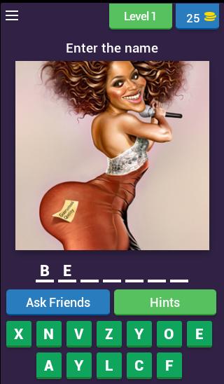 Katy Perry, Beyonce, Lady Gaga, Adele, Justin Timberlake, Britney Spears, Johnny Depp, Robert Pattinson ... connaissez-vous ces noms? De nombreuses célébrités populaires, acteurs et actrices, chanteurs et rappeurs, réalisateurs, politiciens et de nombreuses autres personnes célèbres apparaîtront à chaque nouveau niveau sous une apparence inattendue! Votre tâche est de trouver une personne célèbre et d'écrire son nom! Le jeu a beaucoup de conseils et de bonus! Obtenez des récompenses en espèces pour les réponses correctes. Appelez des amis à la rescousse. Ce jeu vous attirera et vous aidera à vous amuser!