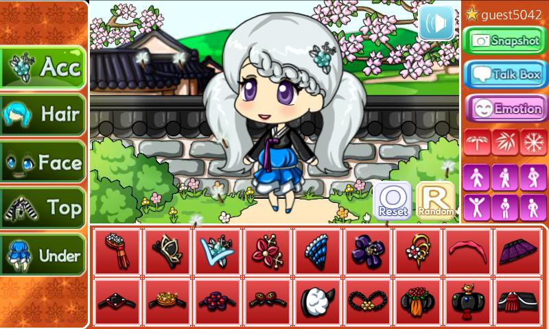 Faites votre propre jolie fille fraîche avec divers cheveux, costumes et accessoires.