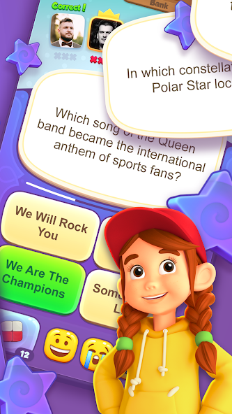 • Plus de 100 000 questions de différentes sphères: de la musique à la mode;