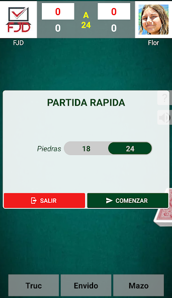 Le jeu se compose de 22 cartes espagnoles (2,8,9,10,11,12, 1 tasse, 1 or et les jokers ne sont pas utilisés). Les cartes ont une certaine hiérarchie et ne peuvent battre qu'une carte de hiérarchie inférieure (en cas de cravate, le joueur qui gagne la main, c'est-à-dire qui a commencé le tour).