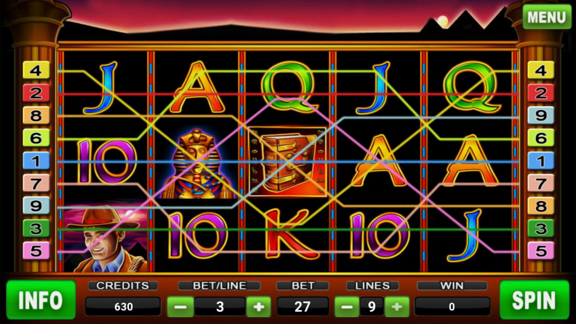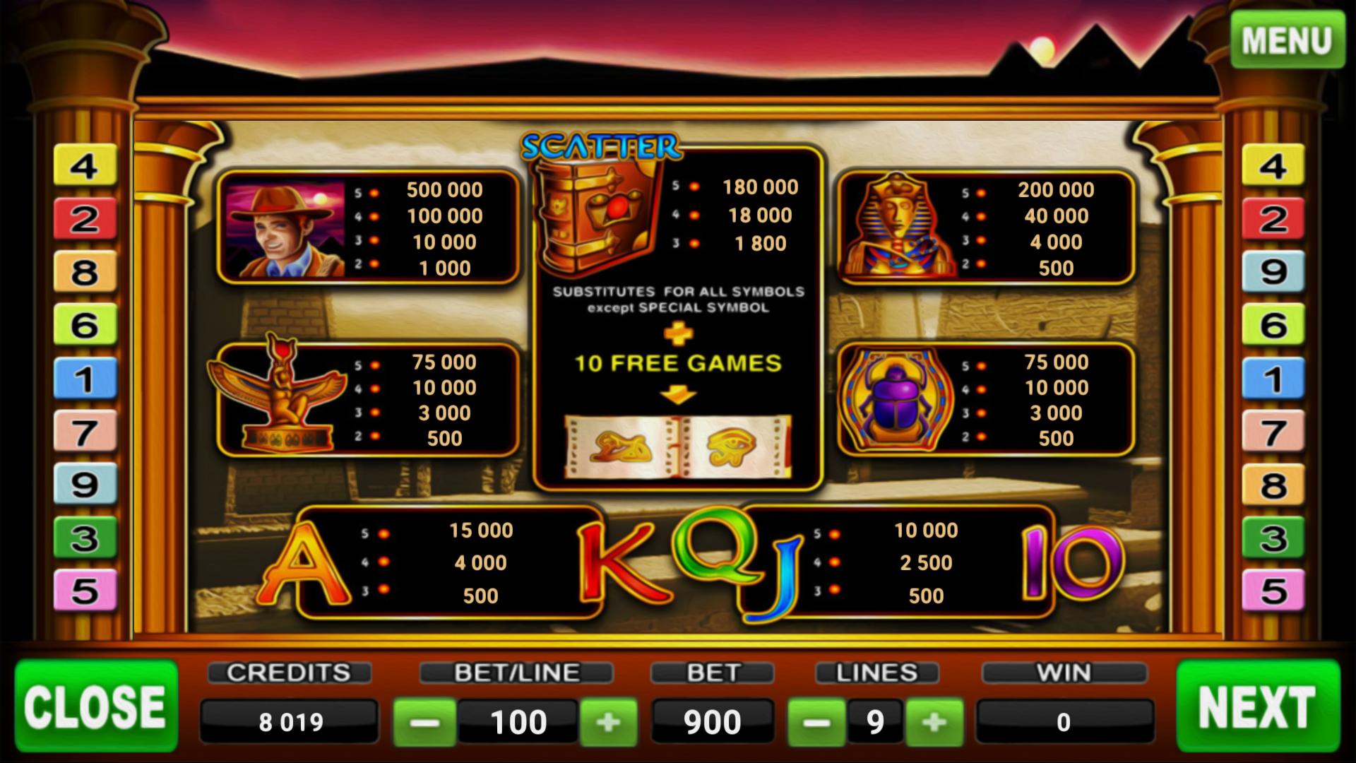 Machine à sous brillante et colorée. Plongez dans le charmant monde de la magie et de la magie, lorsque le pays était gouverné par les grands pharaons. L'intrigue du jeu est remplie de mystères et de mystères. Il y avait un endroit pour des livres anciens uniques et des creuseurs d'or, des merveilles connues du monde et de grandes pyramides. Nous vous souhaitons un jeu réussi!