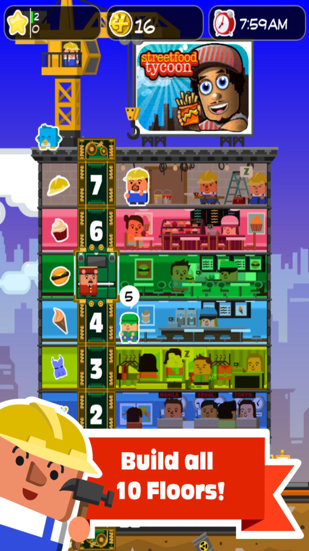 Des créateurs du Tycoon à succès du jeu Streetfood vient une autre application de stratégie amusante et addictive - Elevator Joe , un jeu de simulation de gestion du temps où vous devez amener de minuscules personnes appelées chibizens dans leurs planchers de destination aussi vite que vous le pouvez! En cours de route, vous pouvez mettre à niveau votre ascenseur, faire votre chemin à travers des scénarios, déverrouiller divers articles et personnaliser votre tour.