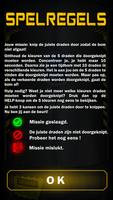- Pour votre première affectation, vous devez vous souvenir de 5 fils de couleur. Ensuite, vous devez les trouver dans 10 fils et les couper! Vous obtenez 3 tentatives! Si vous appuyez sur le bouton d'aide, vous reverrez les couleurs pendant quelques secondes. Lorsque vous vous trompez, la bombe explose!