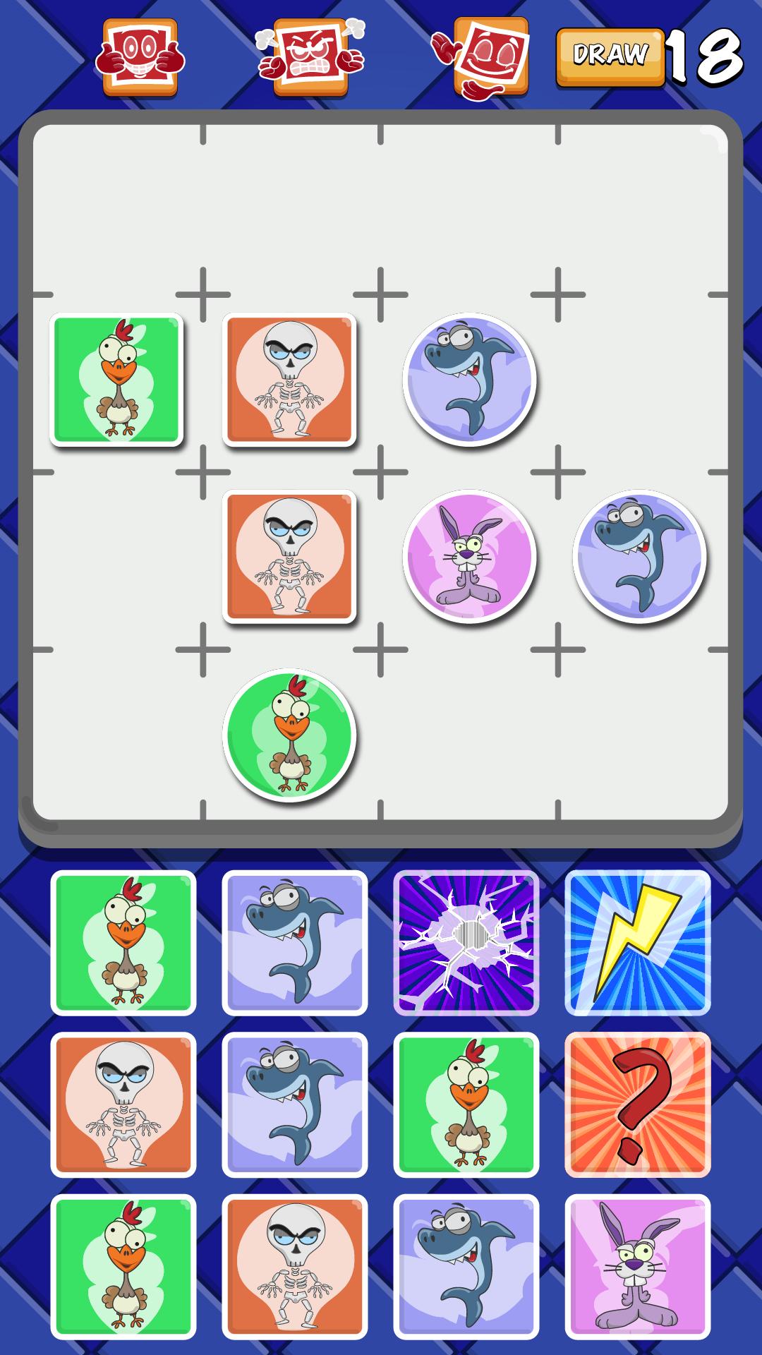 Tusk Battle est un jeu d'arcade basé sur le tour par tour inspiré par le premier jeu installé dans un ordinateur personnel depuis 1952, Tic Tac Toe. Le jeu consiste en un match entre deux joueurs, la portée de chacun est de collecter trois cartes égales contiguës (entre 4 graines: squelettes, requins, poulets et lapins), dans une grille 4x4.