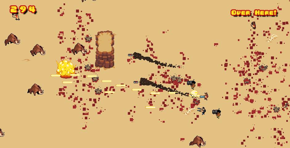 C'est une parodie dure et folle avec des commandes simples et simples, des armes folles, des mécanismes de tir insensés, des tonnes de héros pour faire équipe avec des milliers d'ennemis à exploser.