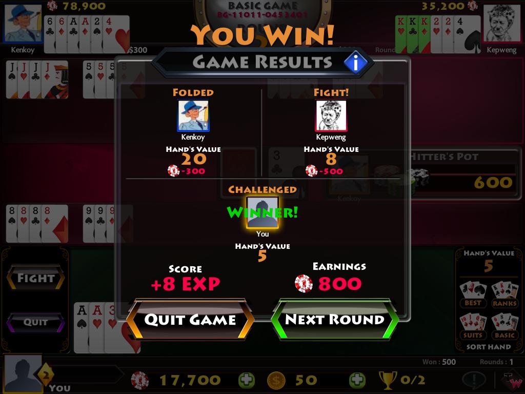 - Si vous avez une valeur de main basse ou ne pensez pas que vous pouvez faire un ensemble, vous pouvez appeler un combat et essayer de gagner le tour