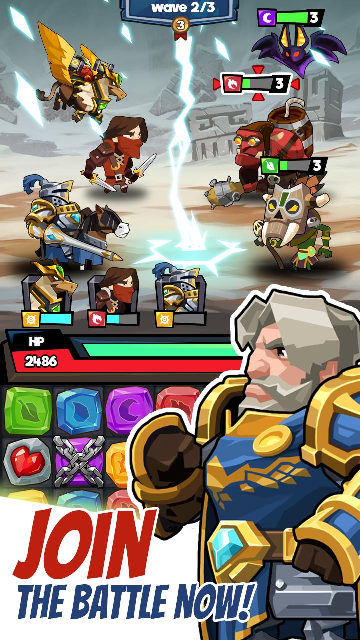 Aidez les mercenaires avec le combo en faisant correspondre les puzzles, trouvez la paix du royaume en battant les monstres maléfiques!