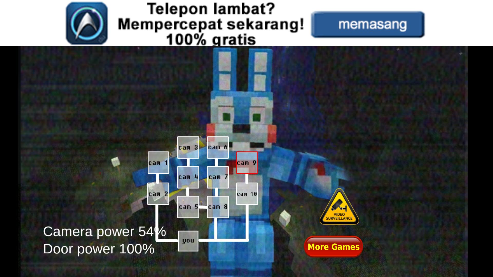 Pour survivre, vous devez vérifier les caméras et fermer les portes avant de vous attraper; Pendant cinq nuits jusqu'à ce que les nouvelles puces pour Bonnie corrompue arrivent!