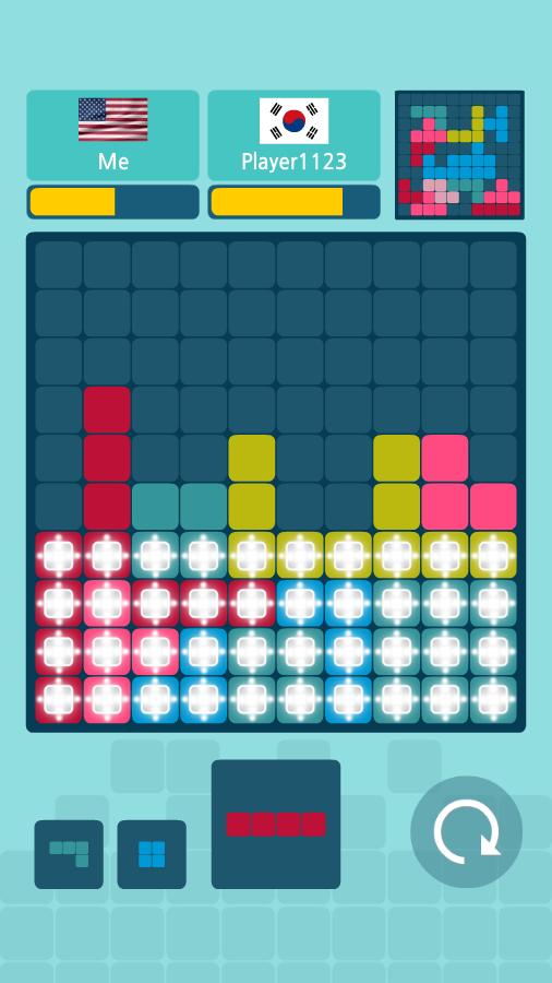 Lorsque vous touchez le Block d'écran est créé et complétez les lignes horizontales et verticales sur l'écran pour supprimer le Block . Il n'y a pas de limite de temps et pas besoin de correspondre à la couleur. Faites pivoter les Block et faites glisser vers l'emplacement souhaité.