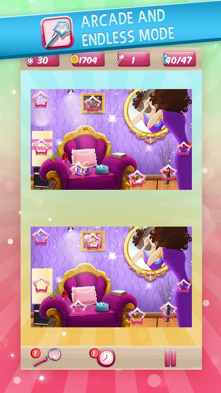 Surtout créé pour les filles! Cette recherche incroyable Le jeu de différence vous offre une chance de comparer les paires de photos de manière divertissante. Nos concepteurs ont créé une interface simple et colorée dans la résolution HD et les contrôles de robinet hautement intuitifs. Il y a les deux modes de jeu: Arcade et sans fin. En mode Arcade, vous devez rechercher les différences très rapidement car il y a une limite de temps. Le mode sans fin vous donne une chance de jouer à l'infini afin de marquer plus de points.
