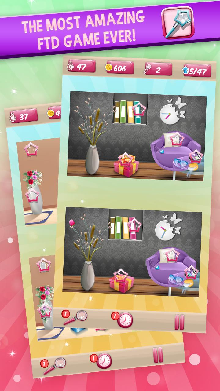 ♥ Find the Difference for Girls ♥ contient la collection de paires de photos qui se ressemblent, mais sont en fait distinctes. Si vous aimez les teasers du cerveau amusants, ce sera votre jeu de puzzle préféré. Cela améliorera vos compétences intellectuelles et vous fournira également des heures de plaisir et de divertissement. Téléchargez-le maintenant et essayez de repérer les distinctions entre deux paires d'images aussi vite que possible.