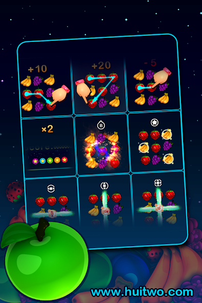 Plus les fruits suspendus sont, les scores les plus élevés sont. Vous entrerez en mode haut de gamme, si vous pouvez vous débarrasser des fruits pendant cinq fois dans un certain délai. Votre score sera doublé et redoublé en combinaison avec une variété d'accessoires de fruits.