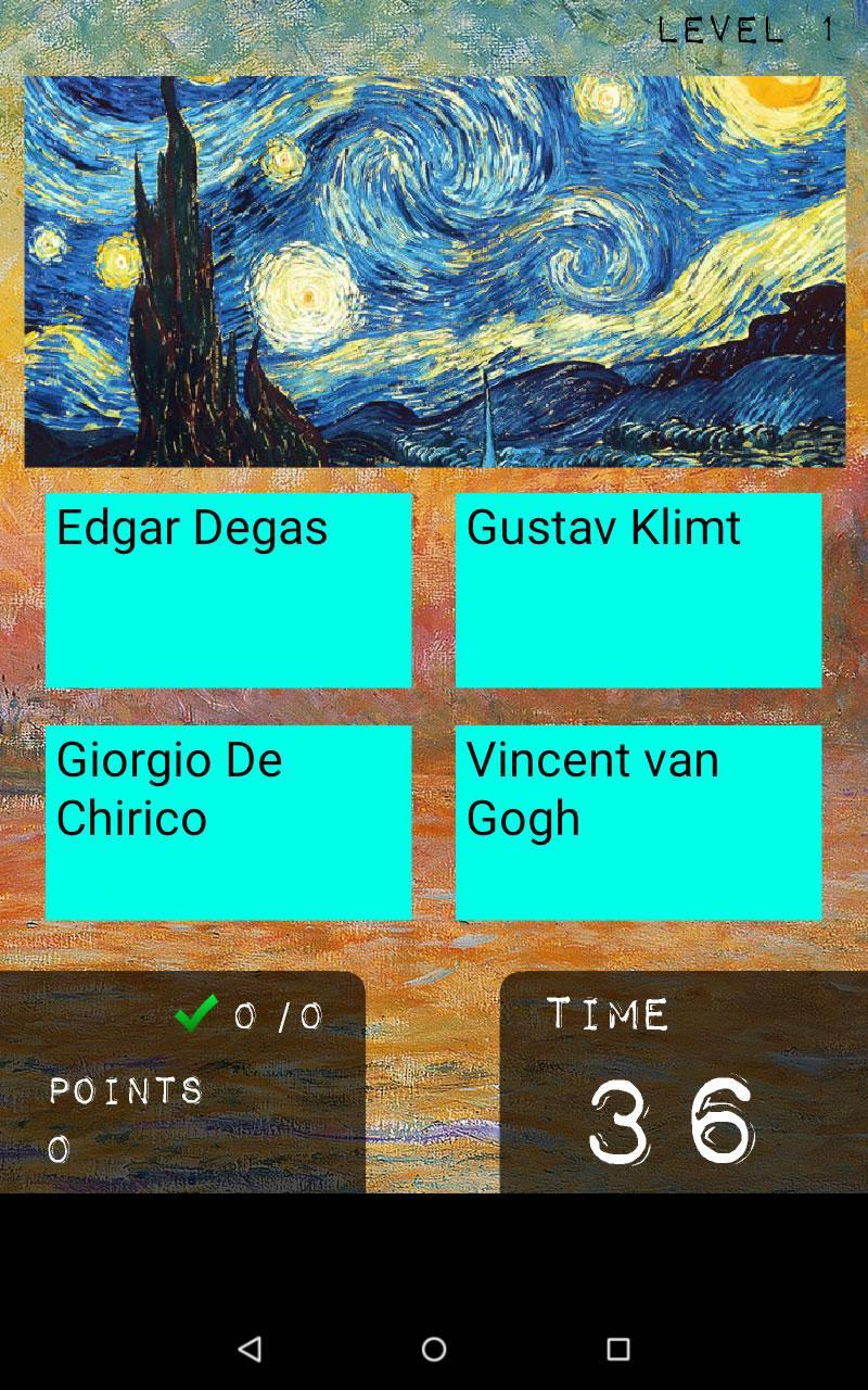 Essayez de deviner les auteurs de peintures et de sculptures provenant de toutes les époques et mouvements, des amis contestants et de tous les autres joueurs du monde.