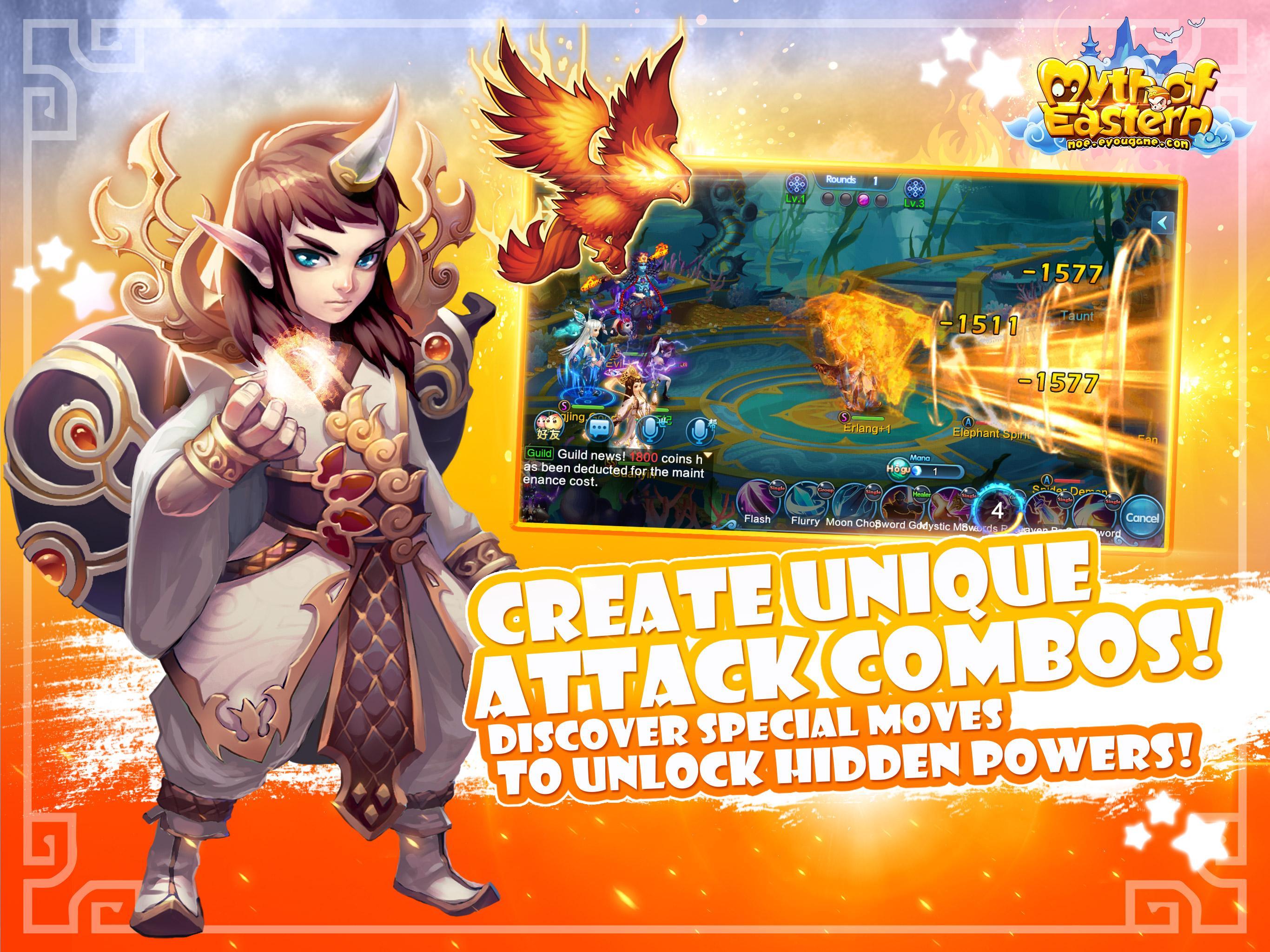 Myth of Eastern est un jeu mobile de style fantastique oriental avec une animation de style de mode Oriental Charm et la sortie du nouveau RPG Aerobat moderne et fantastique: Flying Mount, Holy Ancient Wings que les joueurs peuvent vivre et en profiter. Environ 10 partenaires seront vos alliés au combat, un développement avancé à plusieurs degrés, avec une centaine de formation pour briser les capacités de combat les plus fortes !!! De nombreux types de quêtes de fête telles que mortel quête, chasse aux monstres, etc. Un véritable système de vente de magasins, aucune liaison pour les matériaux précieux et les prix des matériaux dépendent de la valeur marchande. Laissez-vous vivre le monde du jeu le plus réaliste.