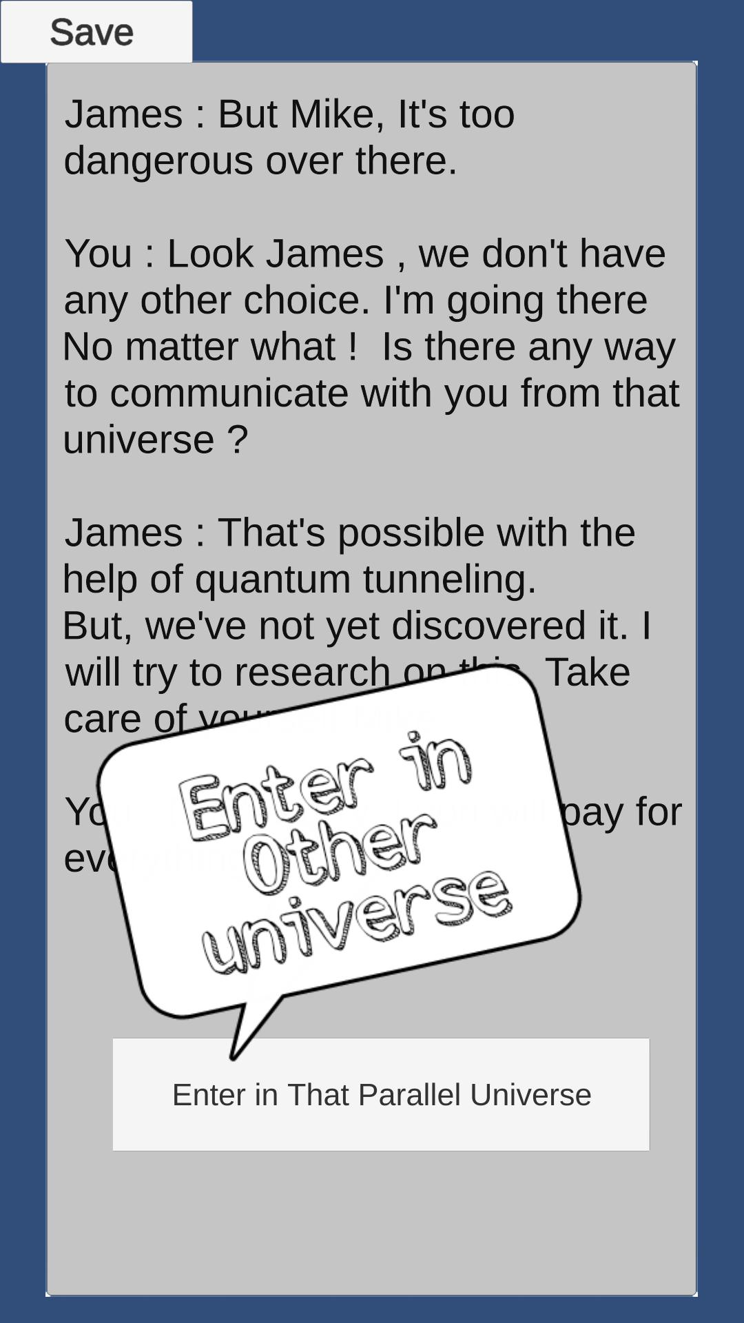 Mais à mesure que l'histoire avance, vous vous retrouvez sur une scène où vous devez sauver le monde des théories inattendues de la mécanique quantique. Pouvez-vous sauver le monde ?