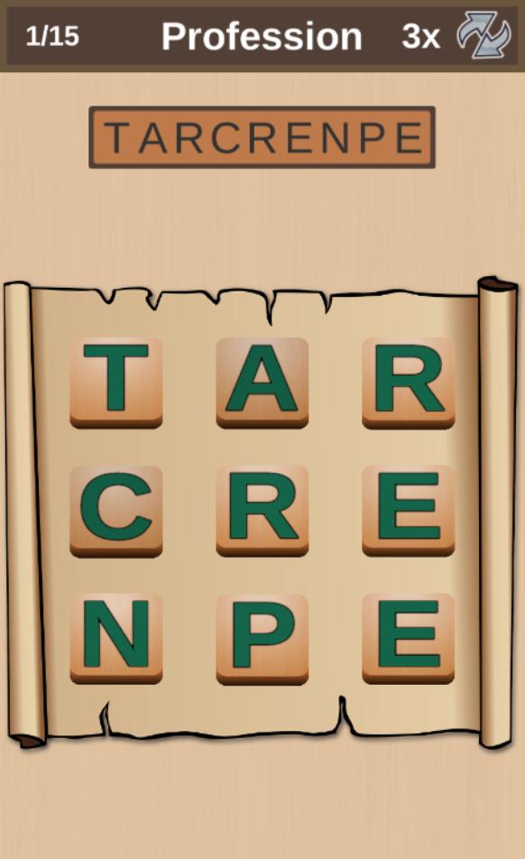 - De nombreux puzzles de mots divisés à sept niveaux en fonction de sa difficulté
