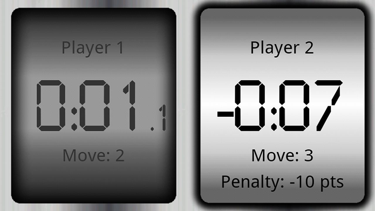Vous pouvez trouver différents modes de temps pour jouer avec cette application, tels que Select entre Fischer, Bronstein et simple retard, mort subite, byo-yomi, canadien et scrabble avec une option pour afficher la pénalité après la fin du temps.