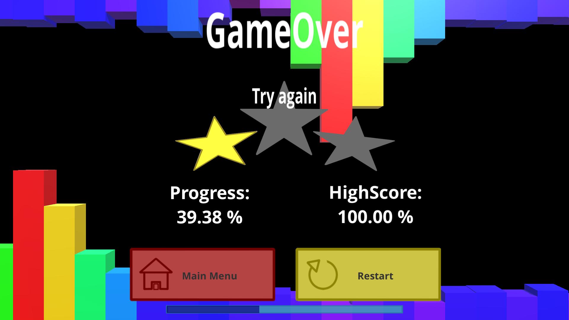 Choisissez une chanson dans votre bibliothèque musicale. Le niveau sera construit en fonction de la musique de votre choix. Le haut et le bas du niveau sont constitués de barres verticales et colorées qui se déplacent vers le rythme de la musique. Le but du joueur est de déplacer la sphère à travers le niveau sans frapper aucun des barreaux.
