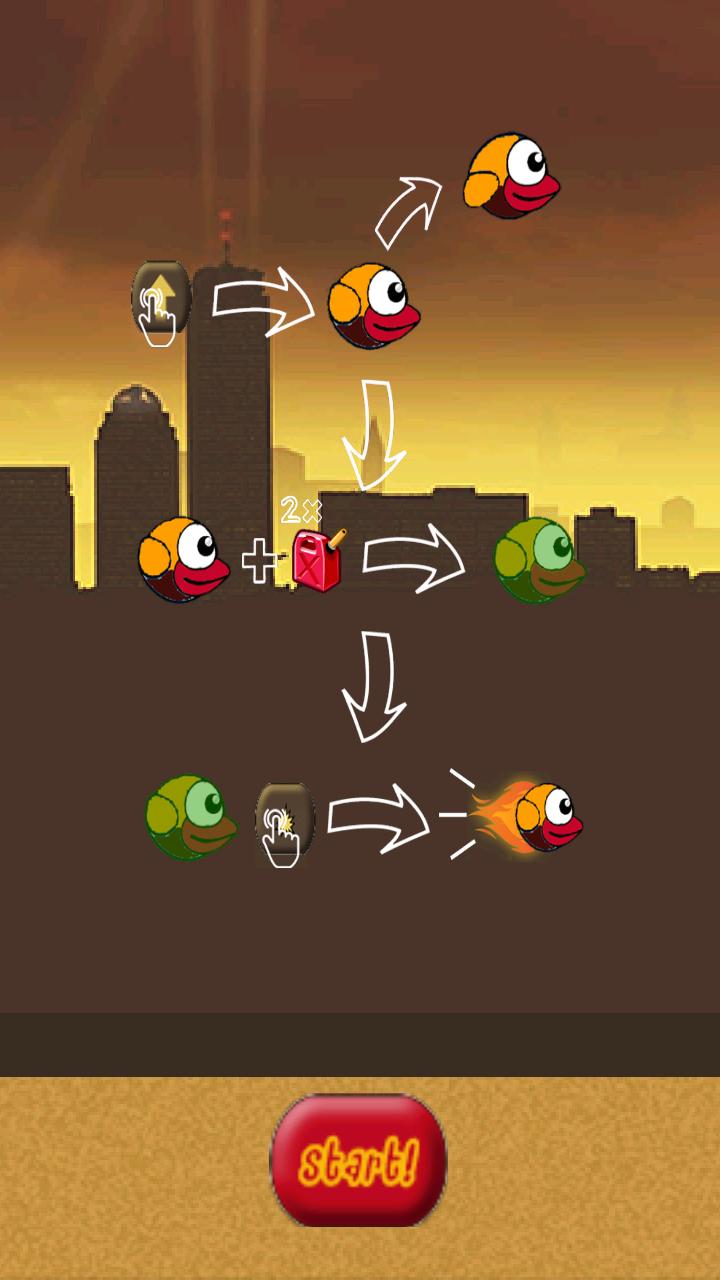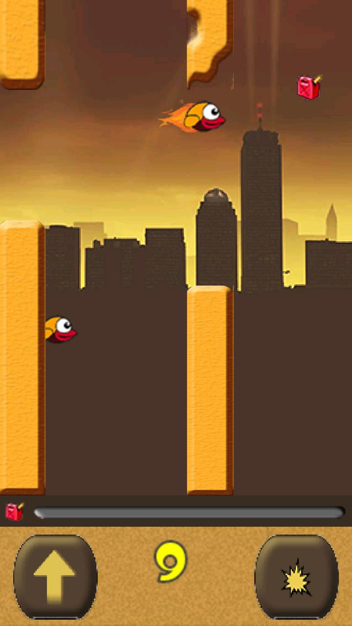 Dans cette application, au début de l'oiseau reste simple et dès qu'elle collecte au moins deux combustibles, elle devient suffisamment puissante pour émettre le super oiseau et briser les barrières.