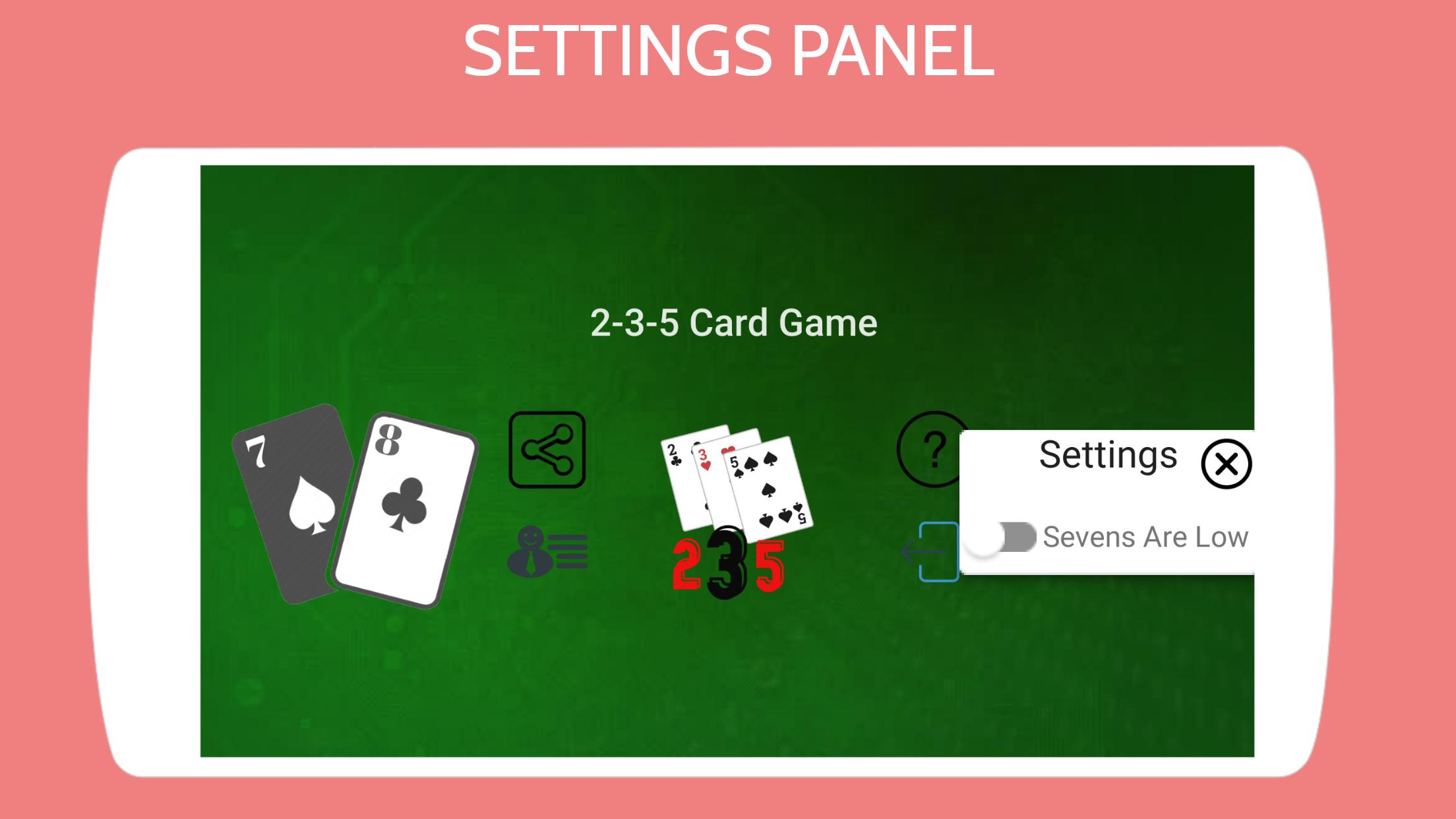 -> Settings Panel to set Sevens of Hearts and Spades as high or low. In Sevens are High mode, the seven of Hearts is called the Big Joker and the seven of Spades the Little Joker.