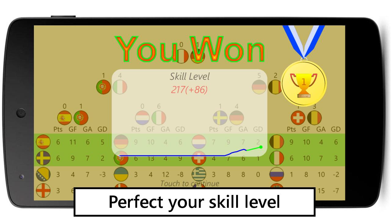 All the other matches that your country is not involved with will be simulated automatically. The difficulty of individual matches will vary with the opposing countries. All game features are free.