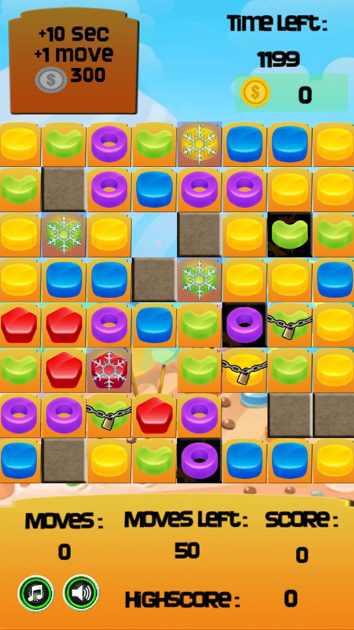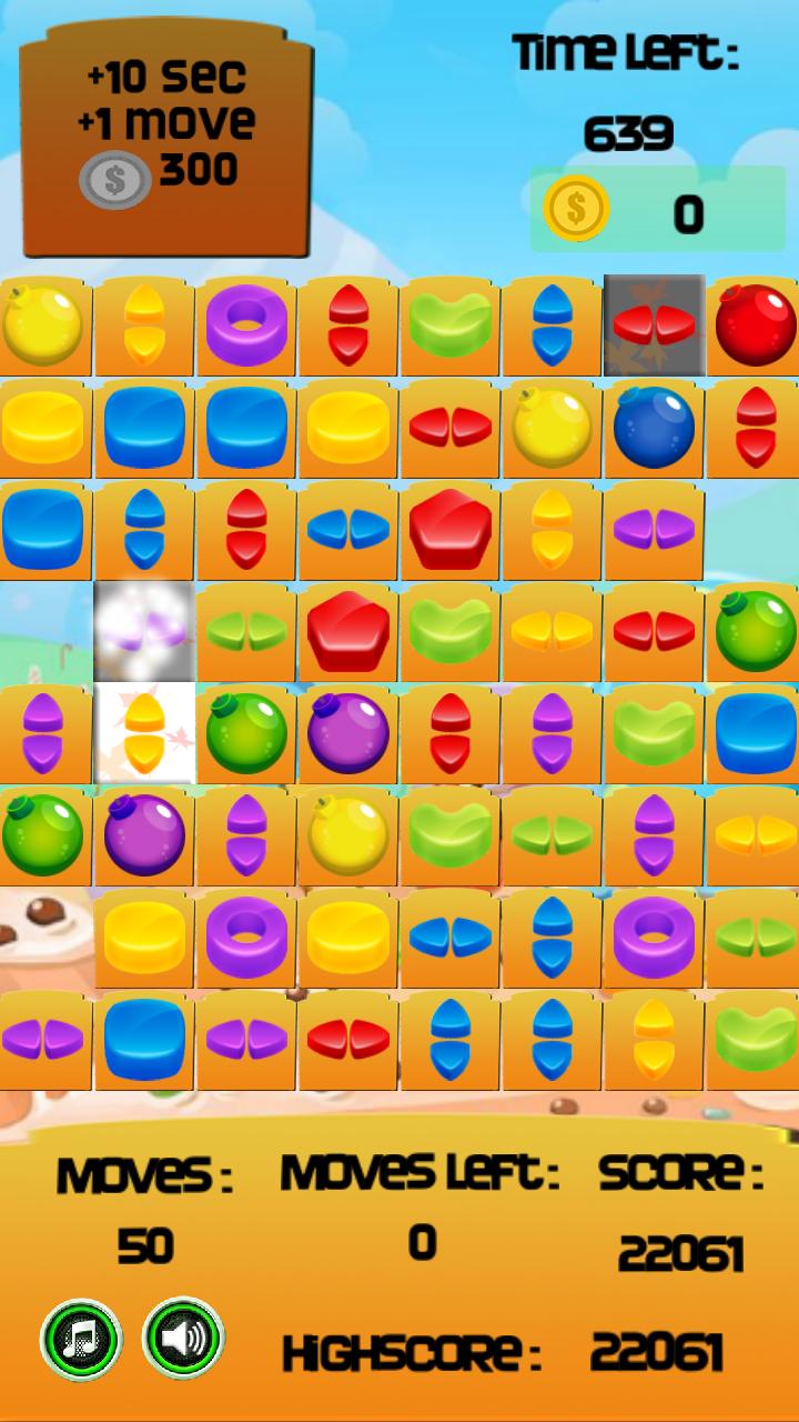 Score more and more point by crush cake and candy. Match 3 or more identical items