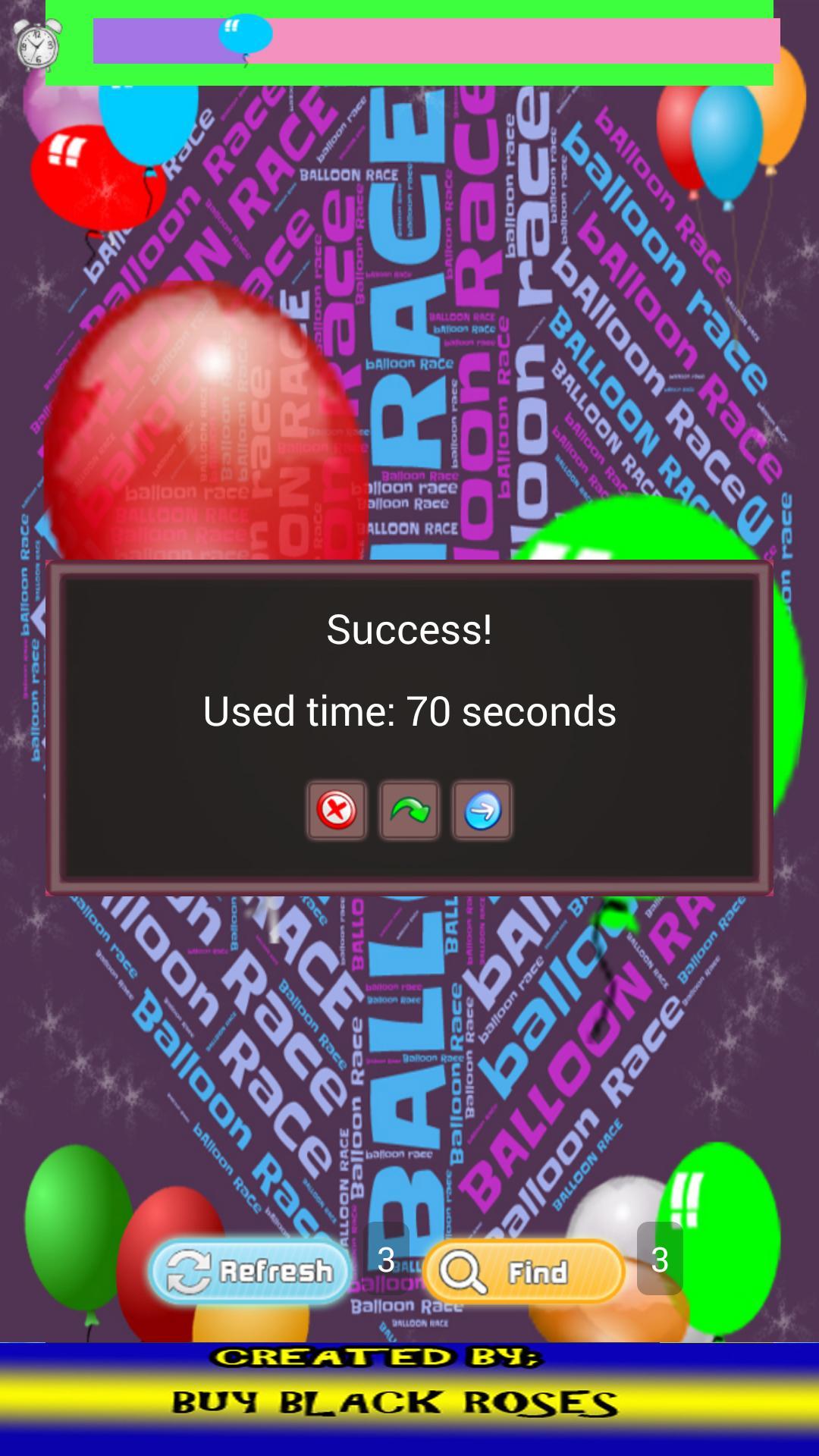 Balloon Race is a timed three round matching game, featuring different balloons. The first round in the Balloon Race is 90 seconds and each round after that is 10 seconds less, so you will have the time to improve each round but with less time on the clock. Be the balloon hero and balloon smasher by making the connection to the balloons that match. This game is a challenge and will exercise your brain muscle. It dares you to beat the clock and make all of the matches. You will have to have the mindset of a balloon hunter in order to win! When you make a linked match the Balloon Race will eliminate the balloons that are a matched link allowing you to make more matches to win the game. You also get some help along the way. You can use the REFRESH button 3 times and mix up the game cards so it is easier to find linking matches. You can also use the FIND button 3 times to help you find some the matching links. Even with help it is still a tough game so Good Luck!