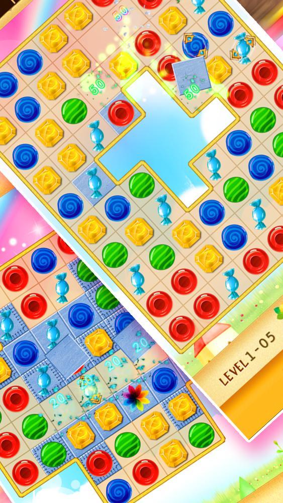 Match candies to collect them, and sweeten the value of neighboring candies. Easy to learn, but challenging to master! Unlike the classic Diamond Game- matching game it has a lot of new features to make the game much more interesting and challenging. Find big matches to create sweet spots for explosive combos and big bonuses!