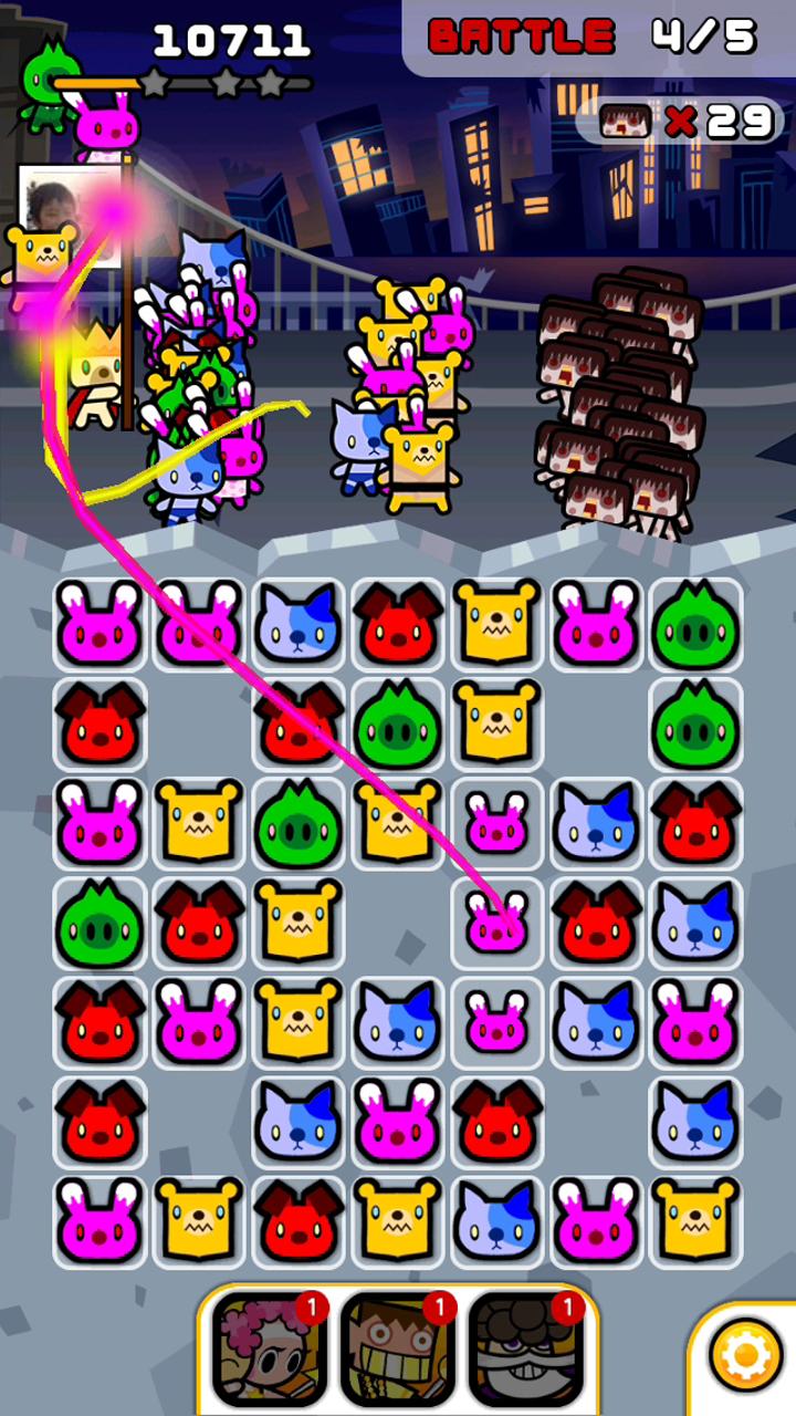 A simple match-3 defense game with a continuous stream of colorful animals!