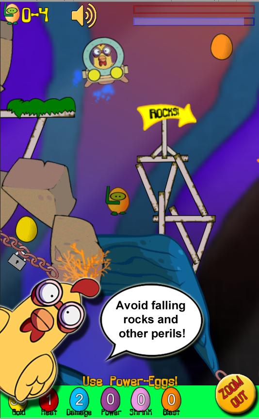 Steer the sub from the green starting platform to the red platform without dying while collecting all of Chicken Poulette's eggs.